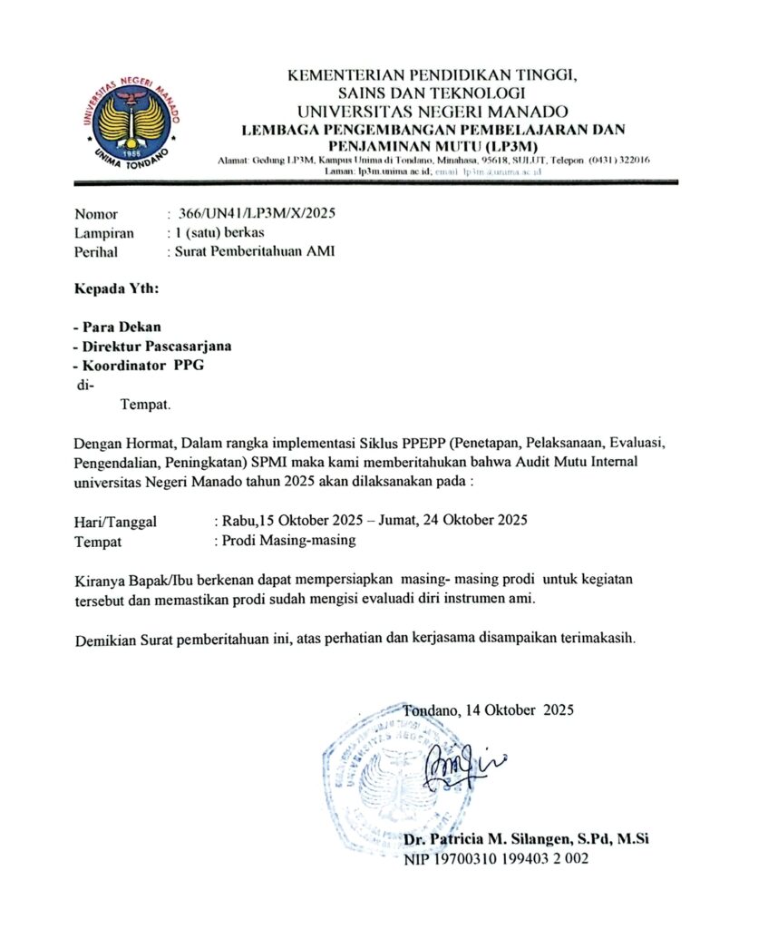 Pemberitahuan Pelaksanaan Audit Mutu Internal (AMMI) 2025